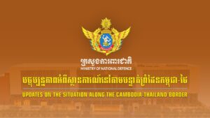 ភ្នំពេញ៖ ក្រសួងការពារជាតិ សង្ខេបស្ថានការណ៍នៅតាមបន្ទាត់ព្រំដែនកម្ពុជា-ថៃ អំពីករណីកងកម្លាំងយោធាថៃបន្តការបាញ់ប្រហារ មកលើកងកម្លាំងកម្ពុជានៅយោធភូមិភាគទី៤ និងយោធភូមិភាគទី៥។