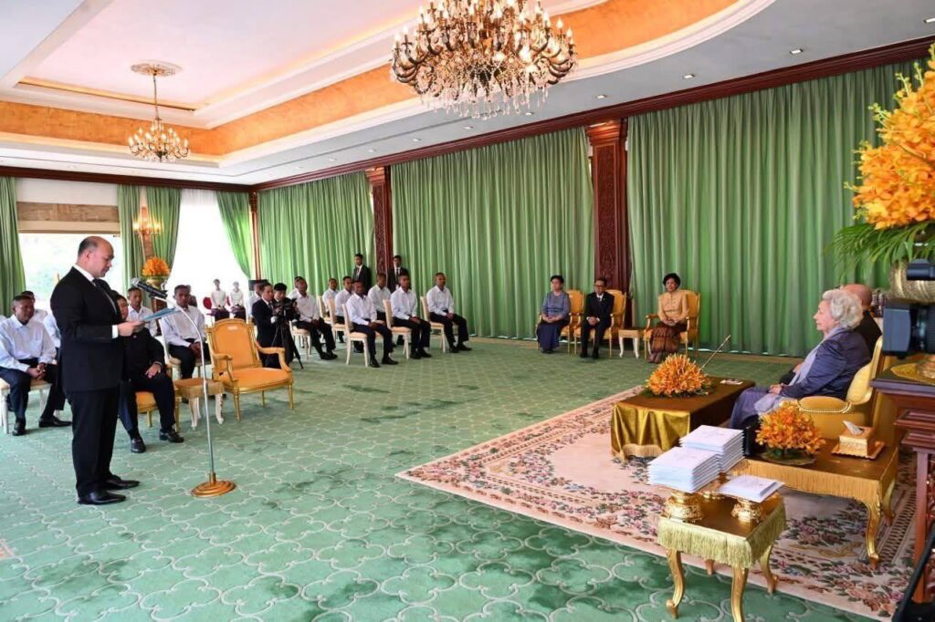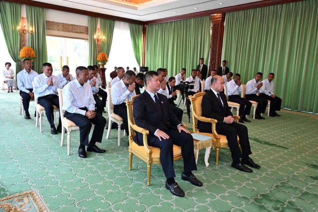 ព្រះកុរណា ព្រះបាទ សម្តេច ព្រះបរមនាថ នរោត្តម សីហមុនី ព្រះមហាក្សត្រនៃកម្ពុជា និងសម្តេចព្រះមហាក្សត្រី នរោត្តម មុនិនាថ សីហនុ ព្រះវររាជមាតាជាតិខ្មែរ បានសព្វព្រះរាជហឫទ័យប្រោសព្រះរាជទានវីរយោធិនទាំង១៨រូប ដែលបាននិវត្តន៍មកកាន់មាតុប្រទេសវិញ ចូលក្រាបថ្វាយបង្គំគាល់ និងប្រទានព្រះរាជអំណោយ នៅព្រះបរមរាជវាំង រាជធានីភ្នំពេញ នាព្រឹកថ្ងៃទី០១ ខែមករា ឆ្នាំ២០២៦។